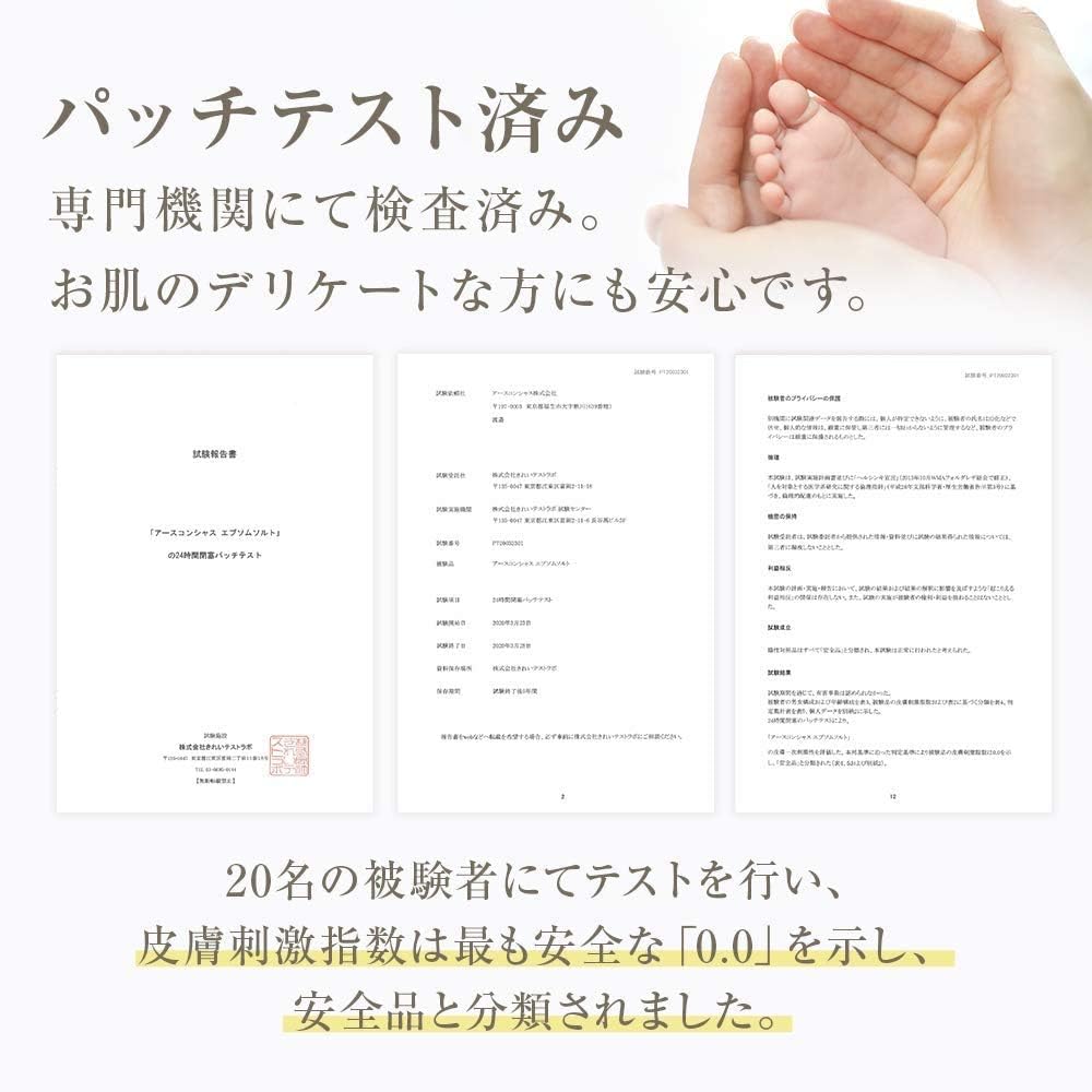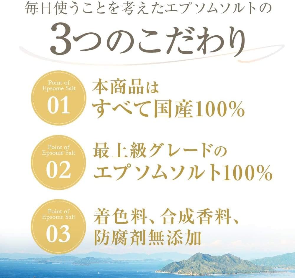アースコンシャスのエプソムソルトは、岡山県で採れた高純度の硫酸マグネシウムを100%使用した、無香料・無着色のナチュラル入浴剤。ハリウッドセレブにも愛される「エプソムバス」を、ご家庭で手軽にお楽しみいただけます。