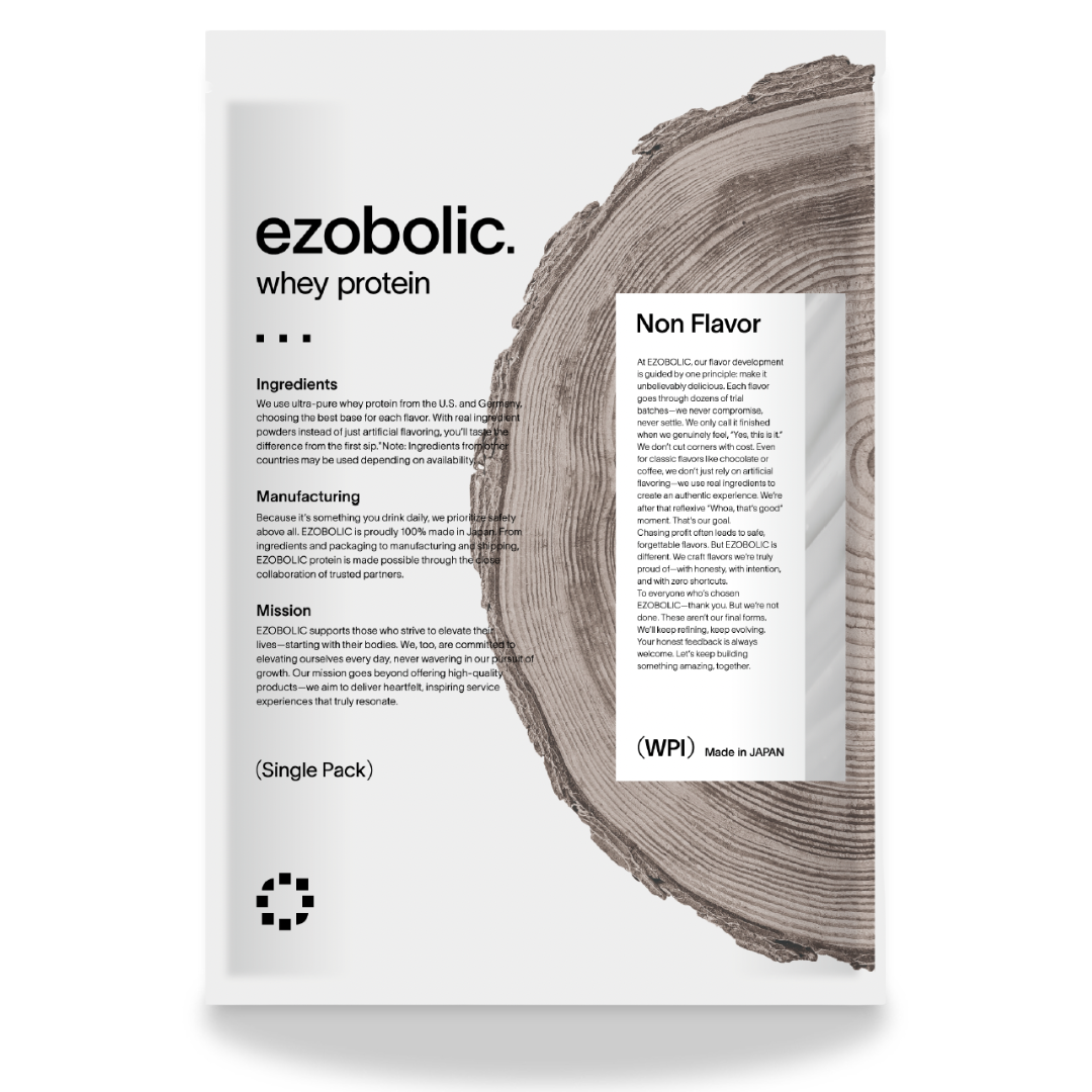 WPIプロテインからノンフレーバー味が新登場。味なしの甘さなしのプロテインです。 プロテインのパウダーはヨーグルトの上の澄み液をパウダー状にしているため、ノンフレーバーは無糖のヨーグルトの上の澄み液を飲むようなイメージです。 人工甘味料を取りたくない方、フレーバー付きのプロテインに飽きてしまった方にオススメです。またスムージーへのご使用も素材の味が活きるため非常にオススメです。