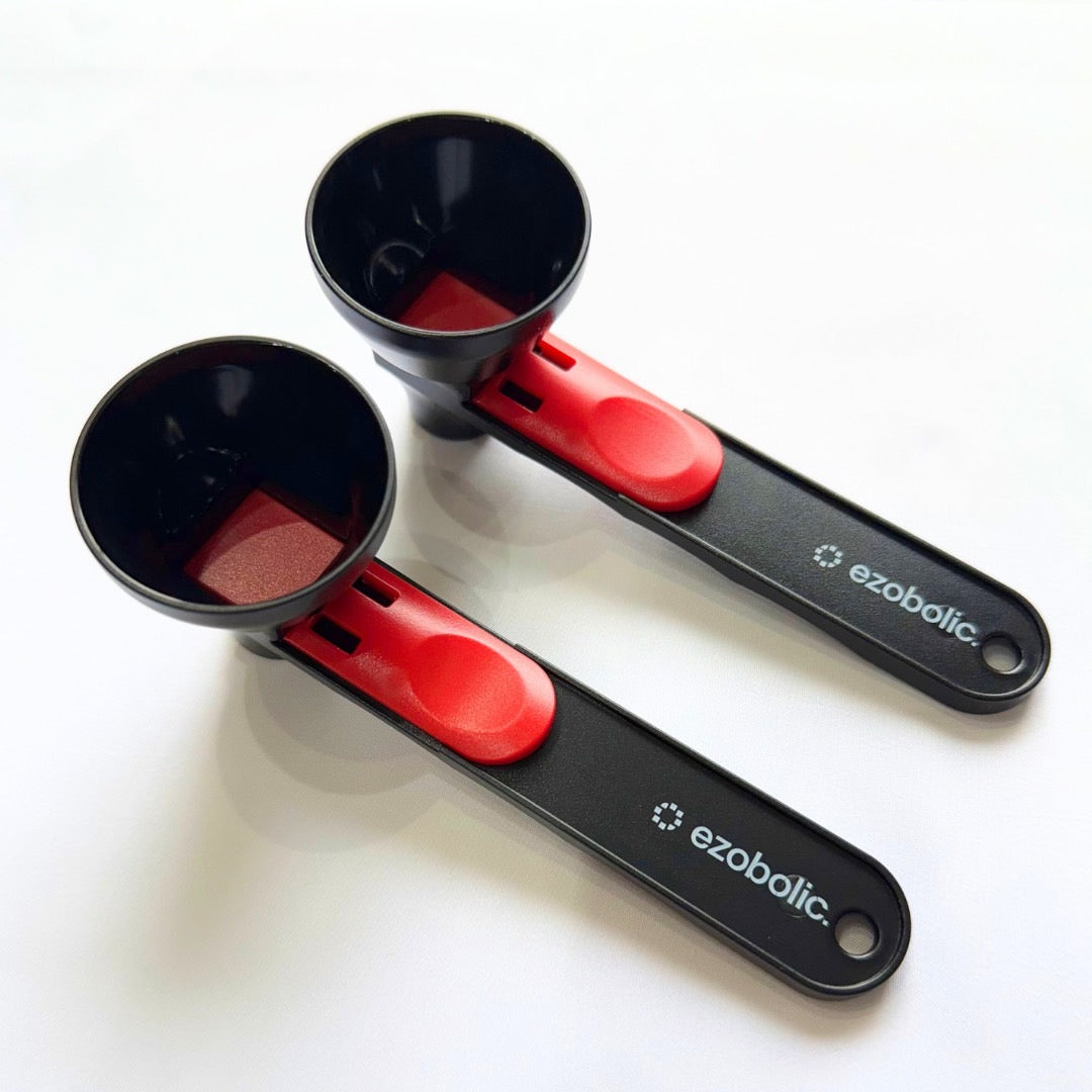 ジムやキッチンでの粉末の計量を、より正確に、より清潔に。