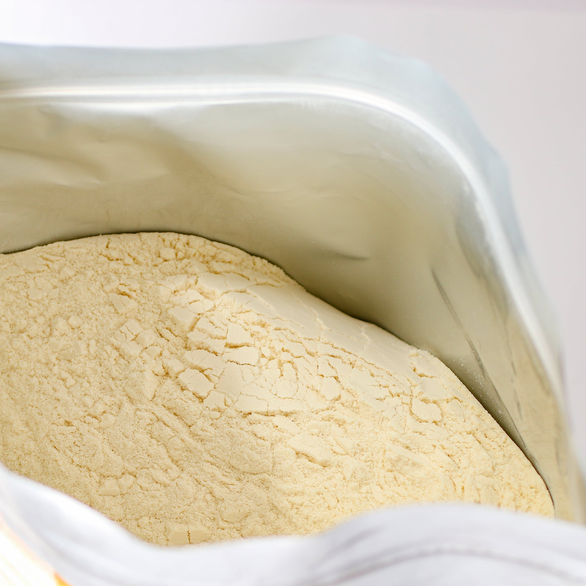 水で美味しく飲めるよう作っていますが、プロテインの味が苦手な方は牛乳や豆乳で割って飲むとより飲みやすくなります。牛乳や豆乳で割ると、水で割るより吸収がゆっくりになります。間食や長時間栄養補給ができなくなる就寝前に摂取をするときは牛乳や豆乳で割って飲むのが効果的です。